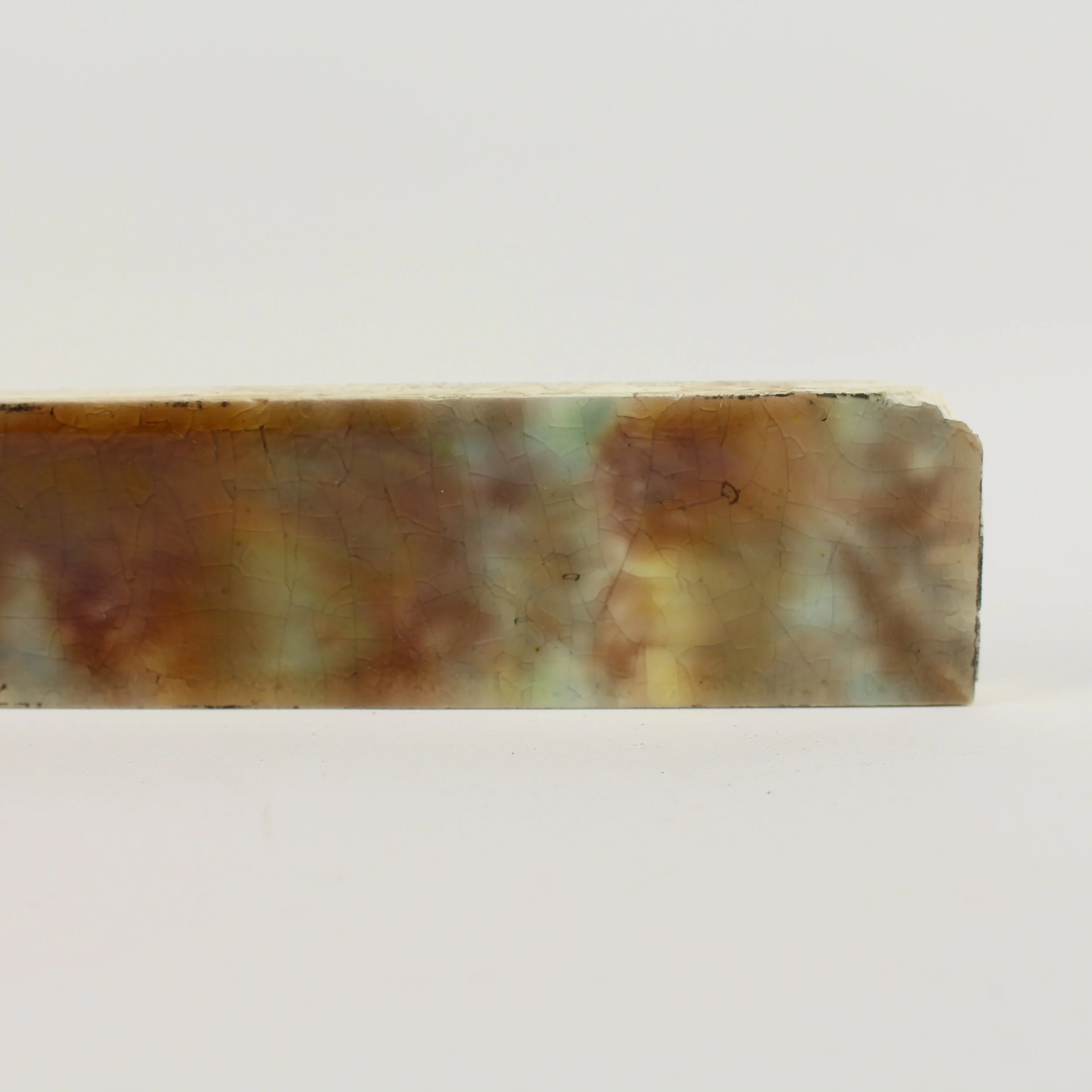 Cambridge Art Tile Works, Set of 36 Victorian hearth/fireplace surround tiles in mottled blues, greens, ivories and caramel browns. These tiles were carefully removed from a Victorian home outside of Philadelphia. One tile has a small corner break (see last picture) otherwise they are in excellent condition with no breaks or serious damage, and exhibit even crazing throughout. There is an extra (37th) tile included with a flea bite chip and a very tight break that would be invisible once installed. Each tile is signed “Cambridge” on reverse. Covington, Kentucky. Circa 1890’s. 6”l x 1.5”w (7/16” thickness). SOLD