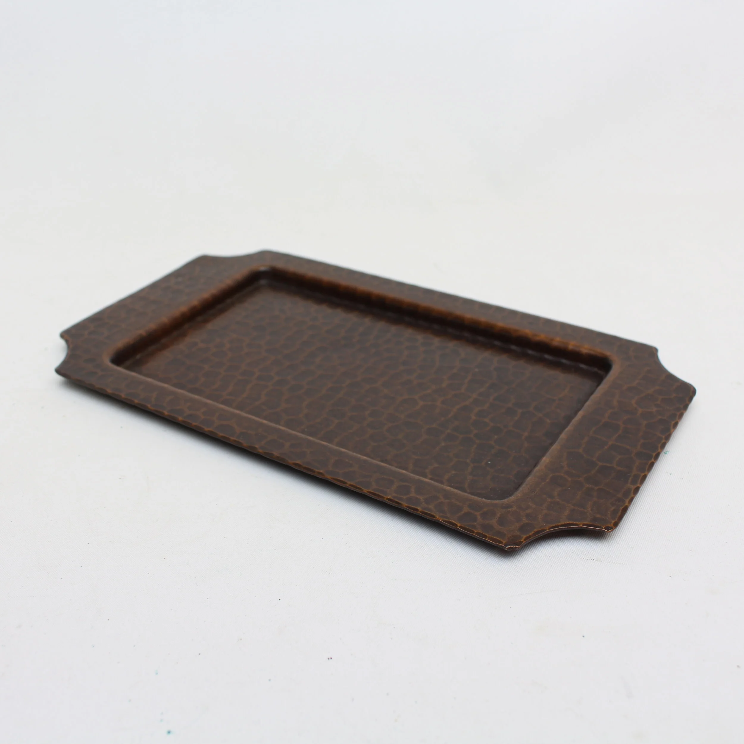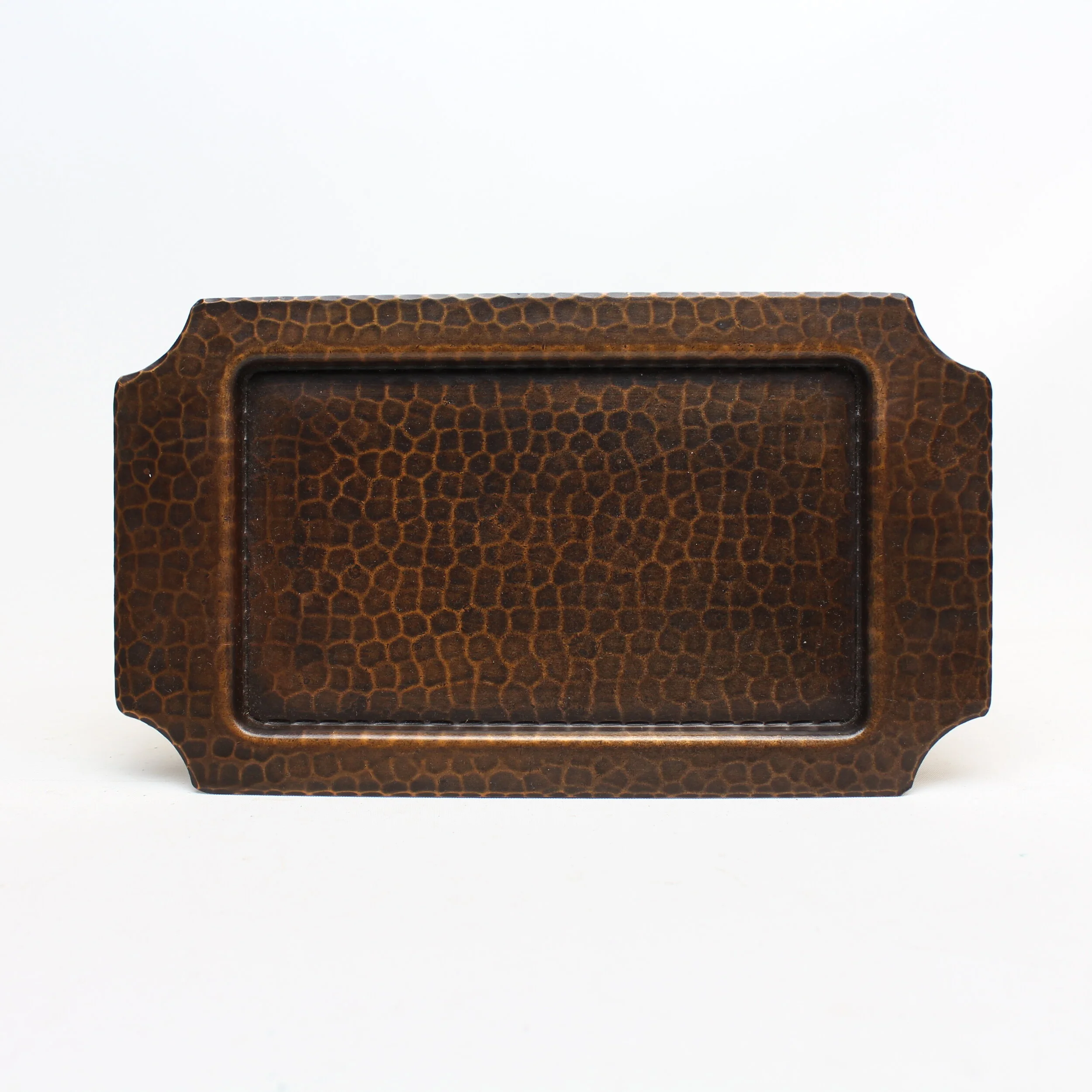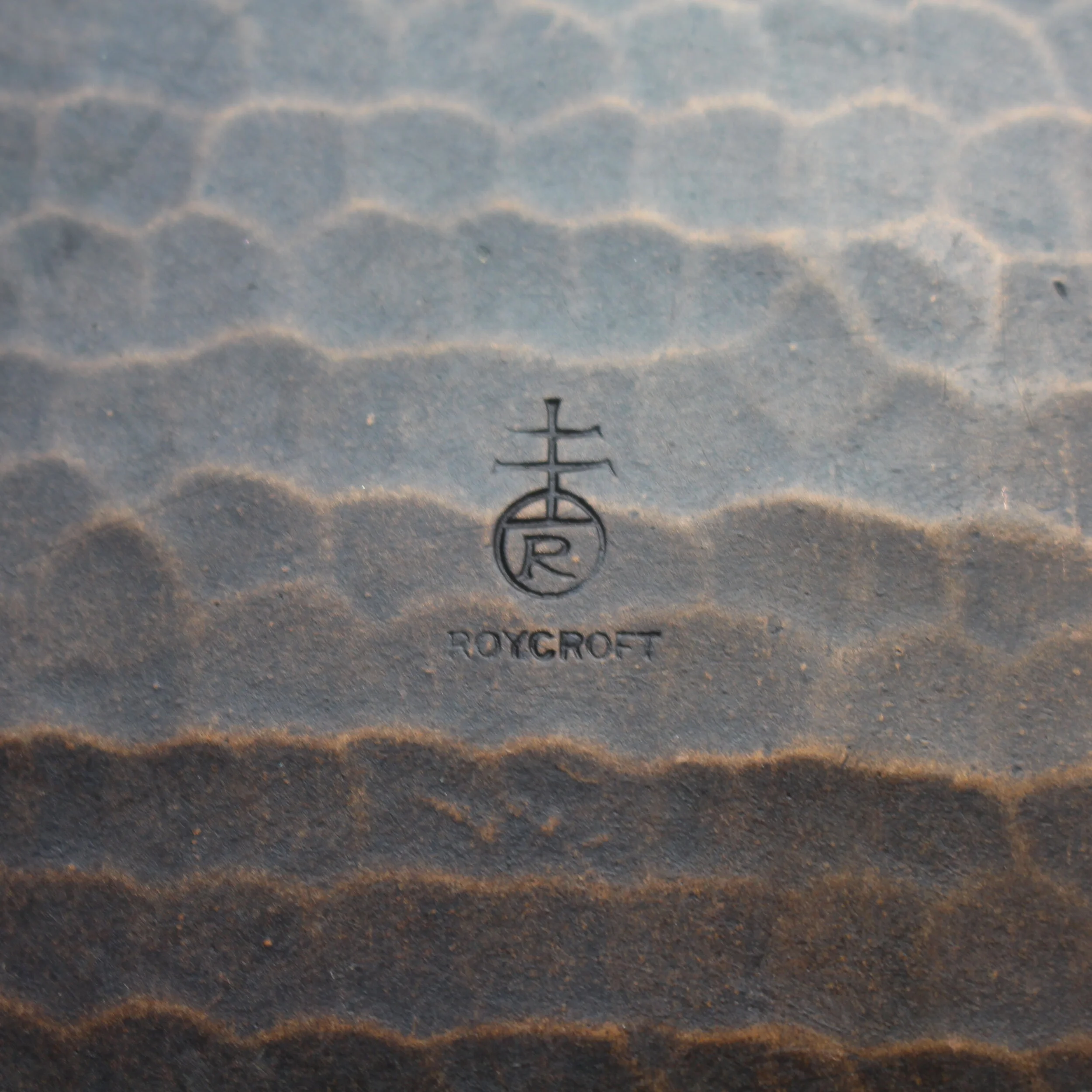 Roycroft hand hammered copper card tray with stitched internal border. Beautifully restored Aurora brown patina. Signed with impressed orb and cross mark over “Roycroft”. East Aurora, NY. 8.25”l x 4.75”w. SOLD