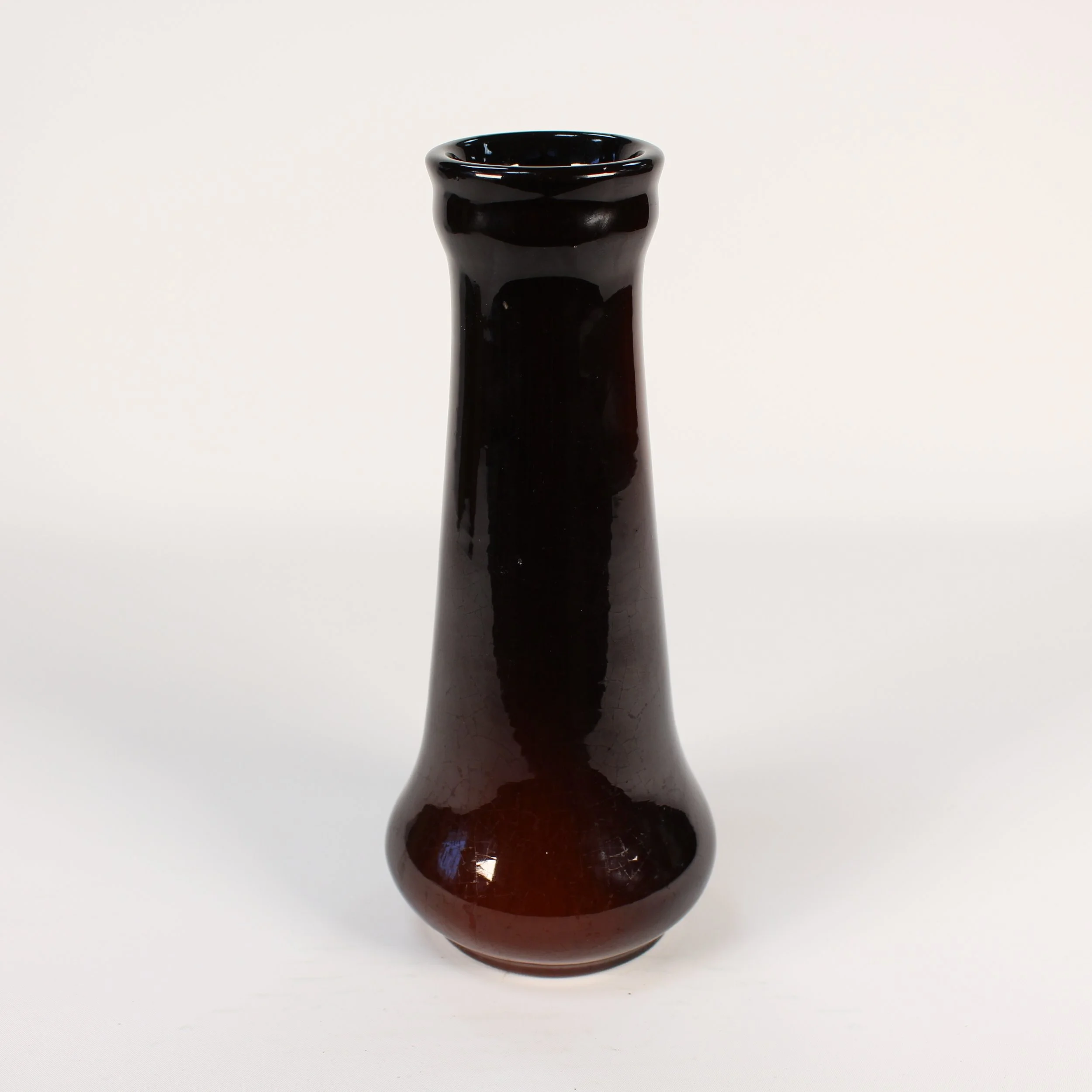 Weller Pottery Louwelsa floral vase decorated in standard glaze with hand painted pansies on a dark brown ground. Excellent original condition with even crazing throughout. Unmarked. Zanesville, Ohio. Circa 1900. 10”h x 4”d. $125.